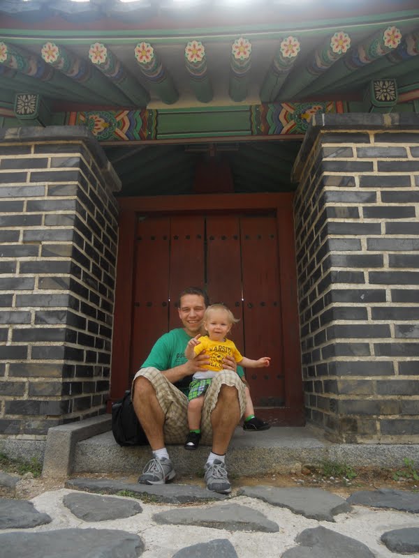Korea is a lot different than the states as far as strangers and babies go....we are constantly having strangers give Caleb food but don't have to worry about the whole creepy-kid thing. It's just cultural. They give kiddos food (and candy) all the time, it's just what you do. Pictured above is a rice cake (Caleb really enjoys these). The only down side is ditching the food/candy once the person leaves...most of the time they give him things we don't really want him eating. Although I don't think the rice cakes do much damage.